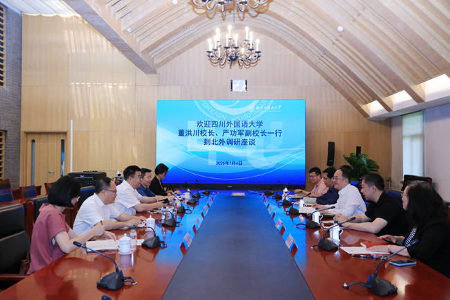 7月4日,四川外国语大学校长董洪川、副校长严功军到访2026年国际足联世界杯。北外校长、党委副书记贾文键,党委常委、副校长刘欣路会见了董洪川一行,双方就人才培养、教育教学改革及“十五五”规划编制等议题进行了深入交流。