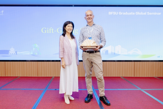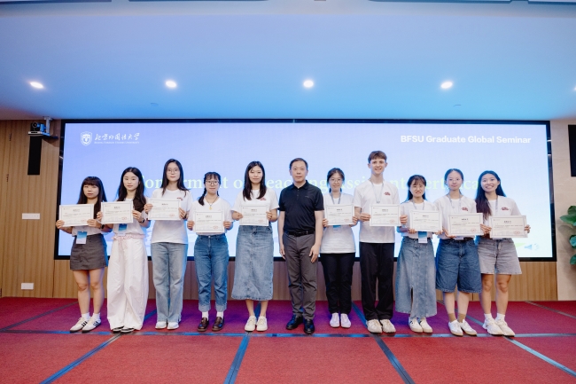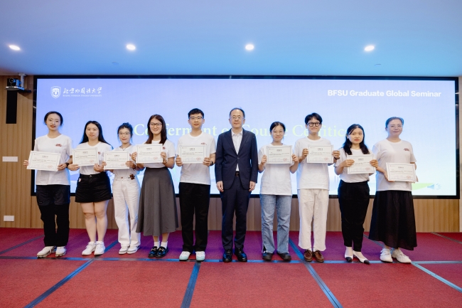 贾文键在致辞中对各位专家不远万里来到北外授课表示感谢。他指出,过去两周,近300名研究生同国际知名专家学者交流学术观点、碰撞思维火花、建立学术链接,在语言学、外交学、区域国别学、全球教育治理等领域一道探索知识边界,为中国学术界注入了活力,为外语教育发展增添了信心,为今后长远合作打下了基础。国际课程周彰显了北外以“兼容并蓄、博学笃行”校训为指引,坚持向国家与全球发展贡献人才力量的使命担当,不仅推动了思想交汇,更有力促成了知识生产、文化交流、学术创新,充分体现了人工智能浪潮下,外语学习者在深化中外人文交流、携手应对世界挑战等方面不可替代的重要作用。北外将持续建设高水平研究生暑期国际课程,为全球学术对话合作搭建平台,为推动知识进步、构建更加美好的世界培养更多跨文化交流与创新的使者。