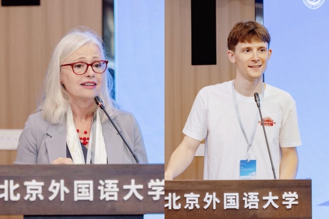 坦雅·赫夫林作为专家代表发言。她高度肯定了各位同学的求知欲与学习热情,深情回忆了第一堂课的场景。课堂始于“讲好故事的意义”这一话题。经过讨论,大家一致认为,“故事将我们与世界连接”,该理念与北外的育人使命不谋而合。赫夫林表示,同学们运用前沿理论解读古老传说时展现出的智慧与思想深度令她印象深刻。她相信,师生在共享故事、交流见解、切磋学问的过程中点燃的思维火花定能长久延续。希望各位同学永葆求知热情,祝愿这段时间积淀的国际友谊历久弥新。