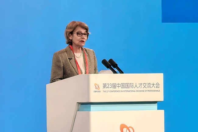 开幕式上,联合国教科文组织前总干事,北外国际组织学院名誉院长、联合国与国际组织研究中心名誉主任伊琳娜·博科娃(Irina Bokova)作为外国专家代表在第23届中国国际人才交流大会开幕式上作主旨发言。她表示,人才流动是推动全球经济增长、技术进步与文化多样性的重要动力,并赞赏中国将人的发展作为政策核心,通过实施精准有力的社会经济政策取得显著减贫成就。她指出,中国当前以开放创新姿态制定的人才引进与保留政策已成为经济可持续发展的重要推动力,强调国际人才是促进文化理解与民心相通的桥梁,呼吁各国加强人才政策对接,通过高校交流项目、联合研发创新与人才流动,能够增进相互理解与尊重,消除偏见,共创可持续的未来与更加和谐的世界。