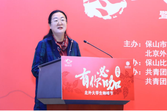 张云怡介绍了保山及当地咖啡产业相关情况。“从一粒种子到一个杯子”,保山已成为全国精品咖啡加工与商贸的重要枢纽,形成了覆盖种植、加工、研发、文旅的全产业链体系。“有你必咖”作为保山面向青年打造的文化IP,正助力“保山小粒咖啡”品牌走向更加广阔的舞台。张云怡表示,欢迎北外学子走进保山,体验咖啡文化,期待进一步深化校地合作。
