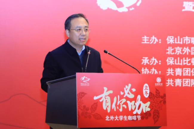 贾德忠向远道而来的保山嘉宾表示热烈欢迎。他指出,此次活动将咖啡文化同多语种特色、就业创业能力培养、北外校园文化相结合,是北外学子生动的国情教育与美育实践。希望同学们既要“读万卷书”,也要“行万里路”,让每一杯咖啡都成为一次文化对话,每一句交流都成为一次文明互鉴。贾德忠表示,学校将持续深化校地合作,助力地方产业发展,引导北外学子讲好中国民族产业发展故事。