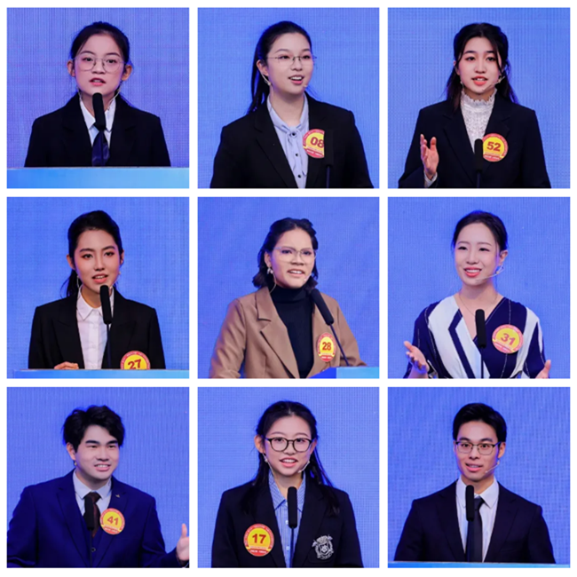 闭幕式前,英语组国际传播综合能力赛项总决赛以9人擂台形式举行。参赛选手围绕“We Voice for a Better World”这一主题,或立足全球治理倡议,深入探讨青年一代如何通过包容共存、文明互鉴、可持续发展的实践路径,为世界未来贡献智慧;或从身边经历出发,结合教育体系变革、文化遗产保护、气候变化应对、绿色发展实践等社会热点,讲述中国参与全球治理的故事,以青年视角洞察全球议题,以创新思维提出解决方案。他们旁征博引、融贯中西,灵活应对评委们的犀利提问。整场比赛节奏紧凑,引得现场掌声不断。