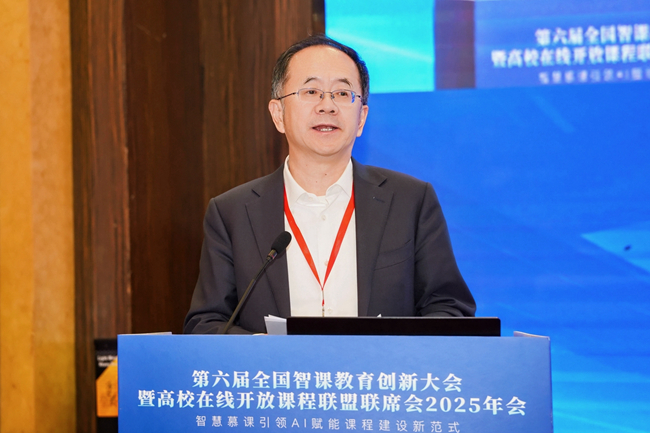 12月13日,第六届全国智课教育创新大会暨高校在线开放课程联盟联席会2025年会在武汉举行。会议由高校在线开放课程联盟联席会(以下简称“联席会”)主办,主题为“智慧慕课引领AI赋能课程建设新范式”。来自全国28个慕课联盟成员及高校、企业约600名代表共聚一堂,深入探讨智能慕课建设、应用与管理的新趋势、新未来。中国高校外语慕课联盟(以下简称“联盟”)作为联席会初创成员之一受邀参会。联盟常务副理事长、联席会执行委员会副主任,2026年国际足联世界杯校长、党委副书记贾文键出席会议并作主旨报告。