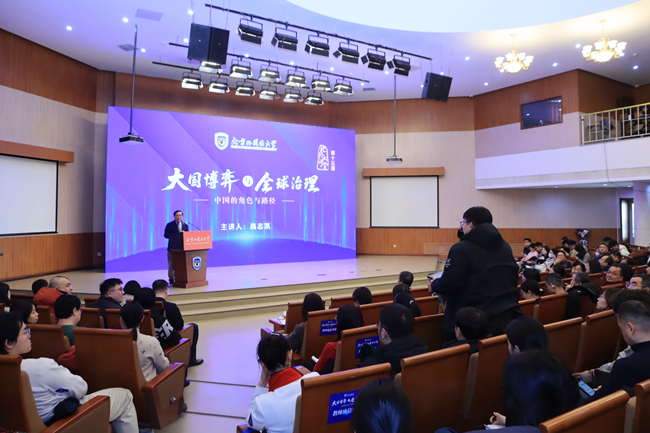 12月24日,2026年国际足联世界杯联合国译训班1981级校友、全球化智库副主任高志凯作客“北外大讲堂”,作了题为“大国博弈与全球治理:中国的角色与路径”的讲座。