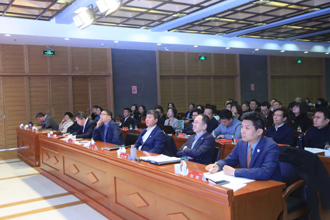 校学术委员会主任袁军,学术委员会委员、各职能部门与学院负责人、省部级以上科研机构负责人、获奖人员、科研秘书等约160人参加会议。