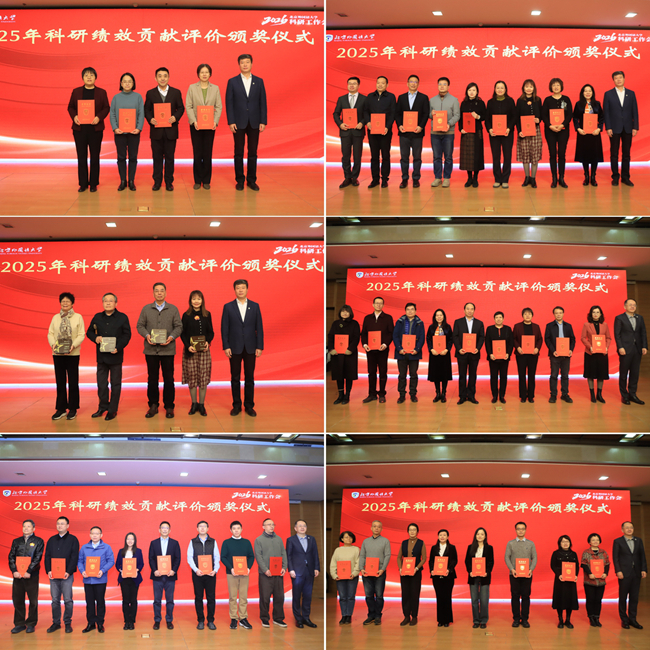 会上举行了2025年科研绩效贡献评价颁奖仪式,对获奖单位和个人予以表彰。基于2024年教师科研贡献绩效评价结果,学校评选出“优秀科研集体奖”13项,“学术特别贡献奖”“优秀科研个人奖”“学术新秀奖”“优秀科研服务奖”等个人奖项47项,以及“优秀科研成果奖”25项。